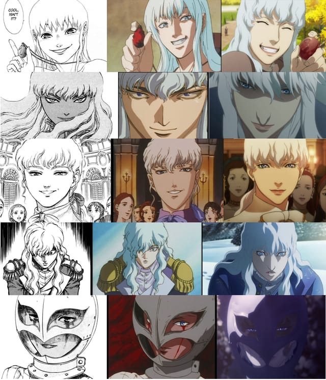 Junto a su ejército luchó en la Guerra de los Cien Años y restauró la paz en el reino de Midland, devastado por la guerra. Sin embargo, tras ser encarcelado, abandonado por uno de sus amigos cercanos y torturado durante más de un año por su propio rey, tras tener relaciones sexuales con Charlotte, Griffith usa el eclipse para sacrificar a todo su ejército y posteriormente renacer como Femto, el quinto y último miembro de la Mano de Dios.